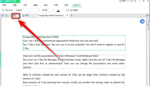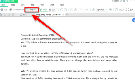 打开pdf文档后,点击工具栏上的“编辑”按钮。