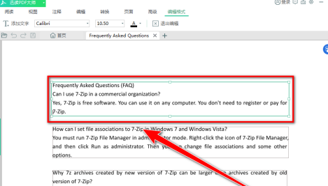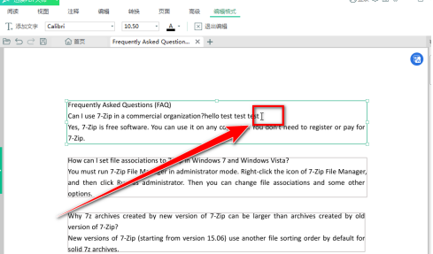 在pdf文档中,点击需要修改的段落,此段落变为可编辑状态。