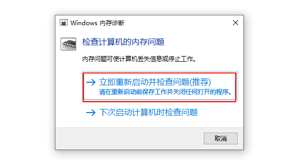 选择“立即重新启动并检查问题”,计算机会重新启动并开始检查内存问题。如果工具检测到内存错误,您可能需要更换内存条。