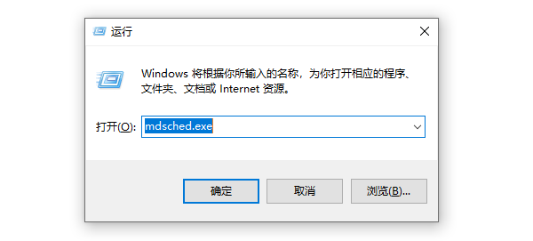 按下 Win R键,输入mdsched.exe,然后按回车。