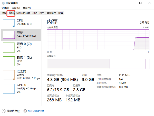一、使用任务管理器查看内存