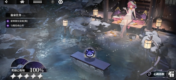 更令人期待的是,温泉任务通常需与特定星痕“结成心契”才能触发。完成心契任务后,角色不仅可出现在温泉剧情中,还会逐步解锁专属的立绘、语音和温泉剧情片段(例如“与桃的温泉邂逅”),这些内容为玩家带来别样的情感体验。