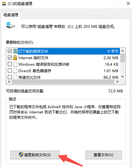2、之后,点击“清理系统文件”,等待系统扫描完成。