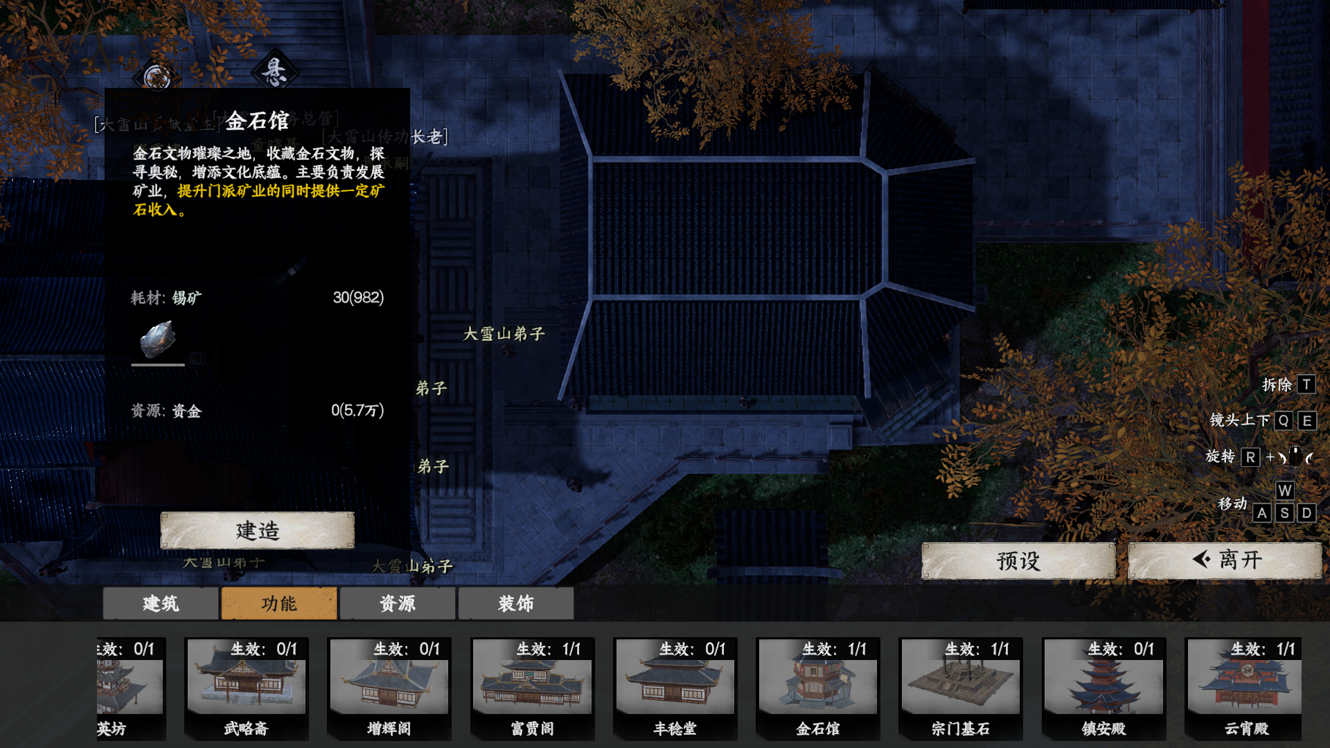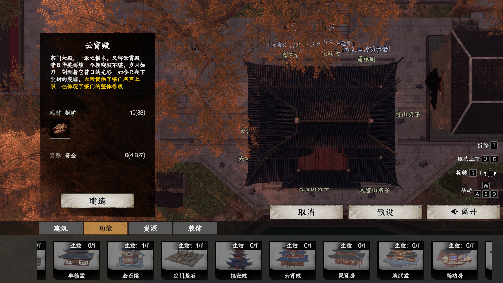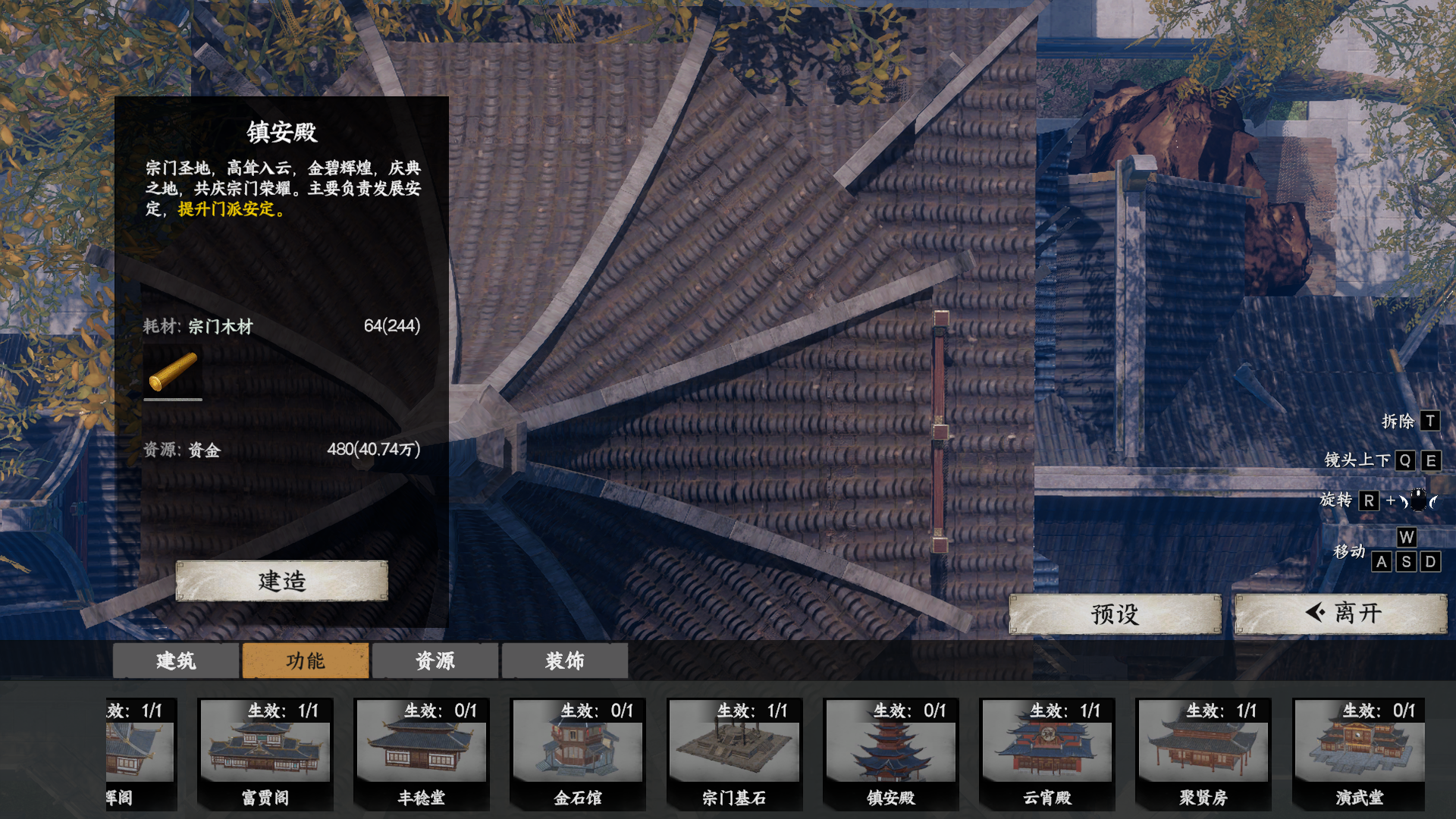 繁荣度可以建造昌瑞楼派遣门人完成任务增加