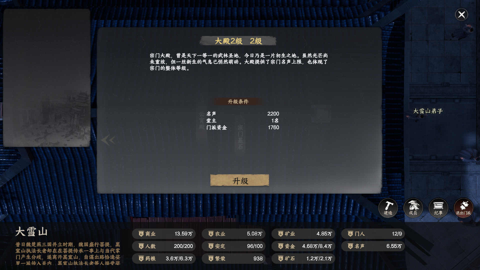 安定度可以建造镇安殿派遣门人完成任务增加,安定度过低门派弟子会叛逃