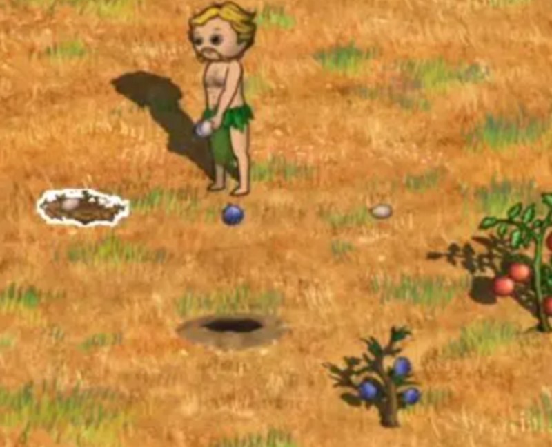 新手需要特别关注角色左上角的饥饿值指标。当饥饿值降为零时,生命值会开始下降,生命值归零后角色就需要重生。部落中有多种可采集的食物资源,包括鸟巢中的食物和各种果树果实。每个村民的饱食度最大为100,通过进食可以快速恢复。