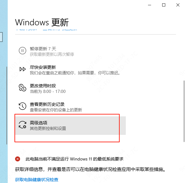 在同一界面下,点击“高级选项”,找到“暂停更新”选项,您可以暂时停止接收更新通知一段时间(通常不超过几周)。
