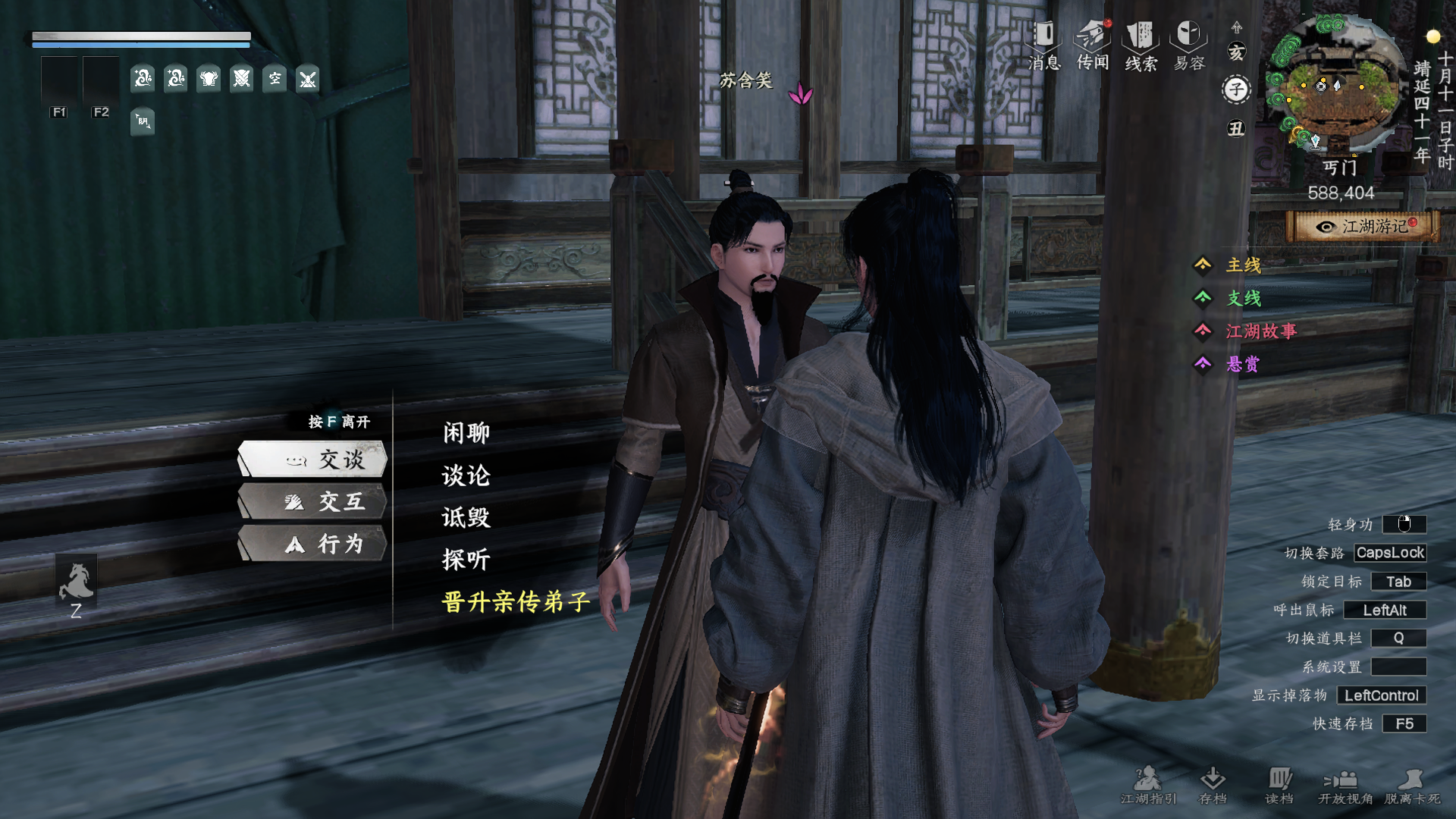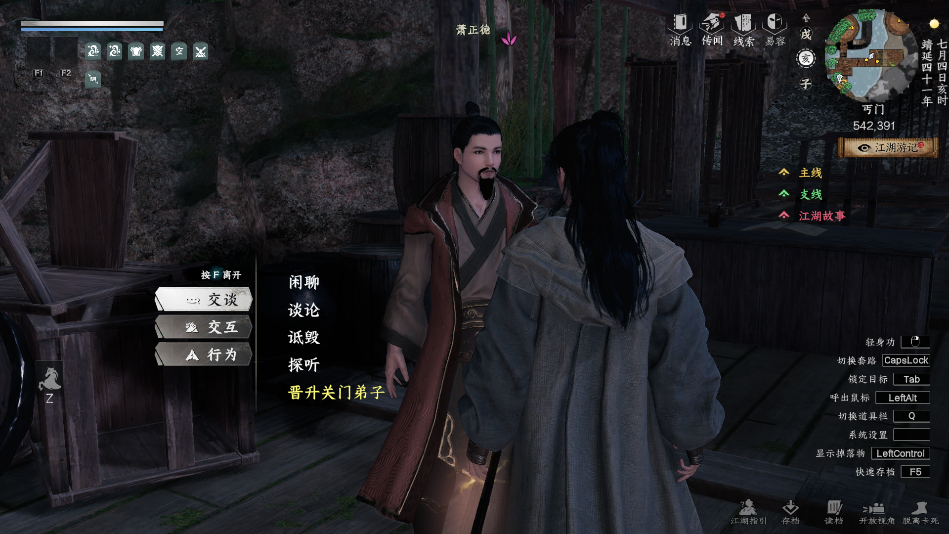 出现江湖故事:晋升任务,跟随指引完成任务后晋升内门弟子
