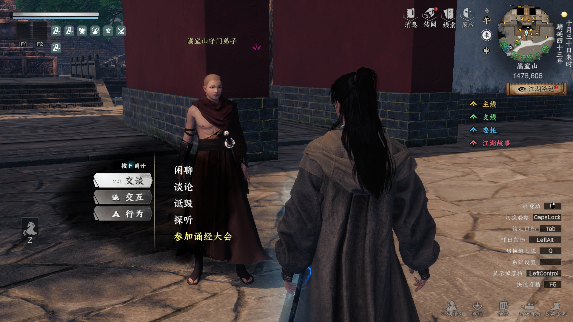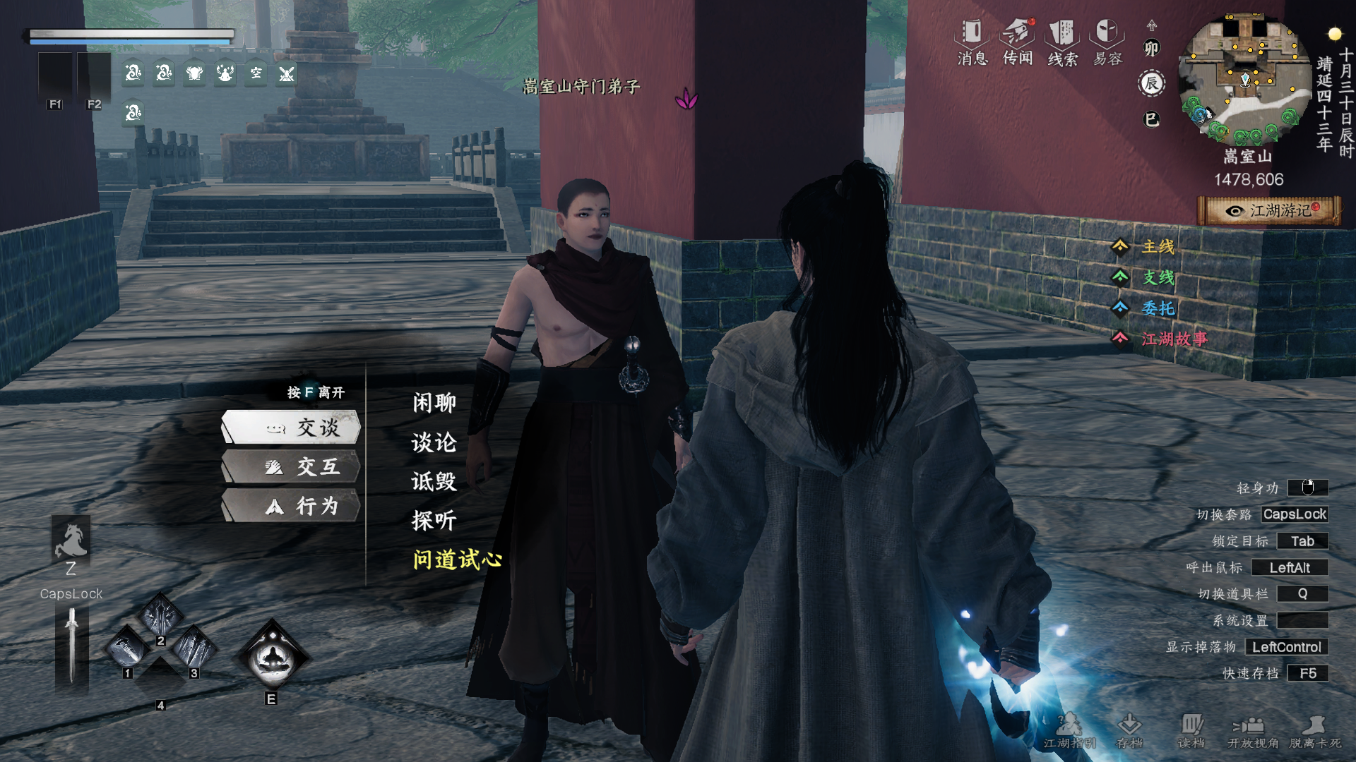 完成支线入寺问道后来到1478.606交谈嵩室山守门弟子交谈问道试心