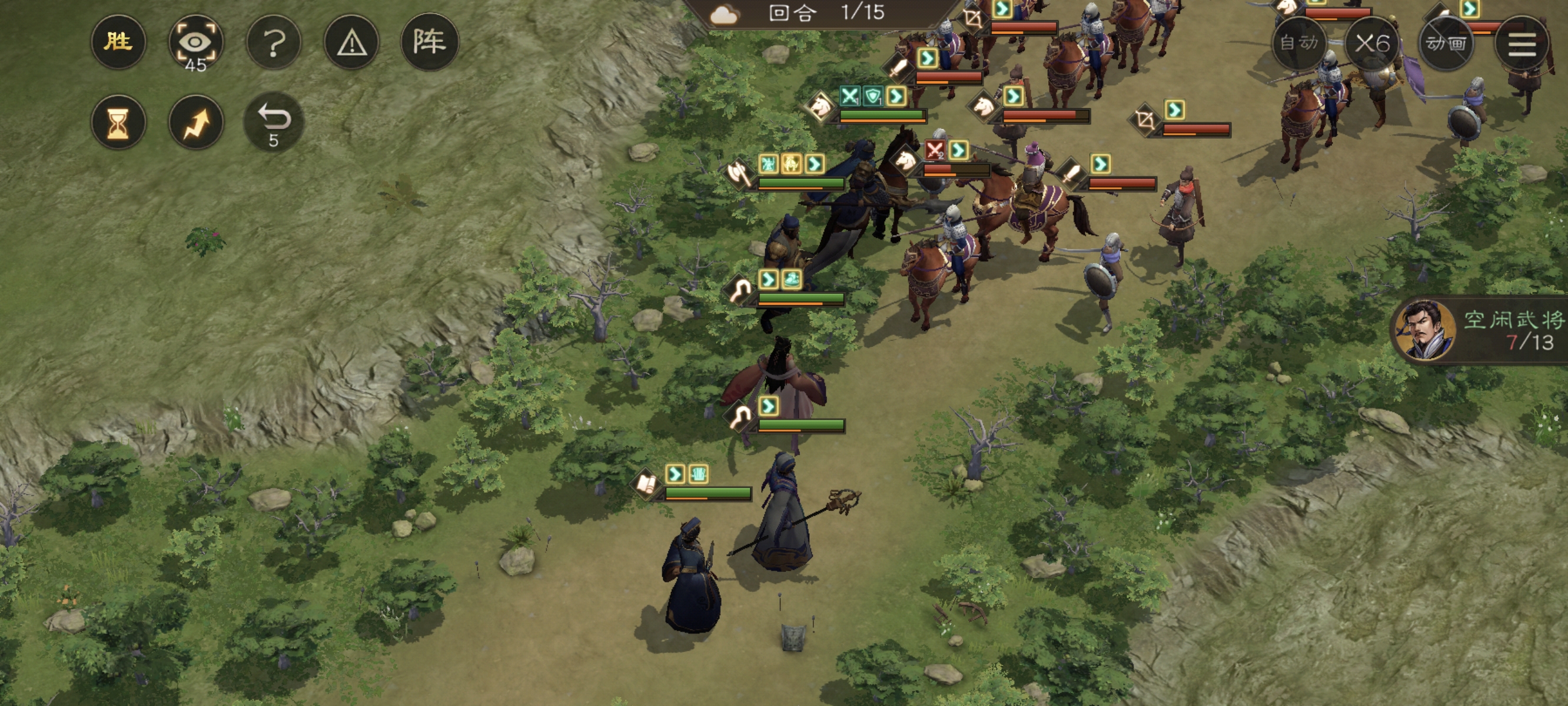 而前面则让许褚左移一格触发树林加成,之后许褚就住在这了,貂蝉可以再动张辽打出输出(早用早CD嘛)