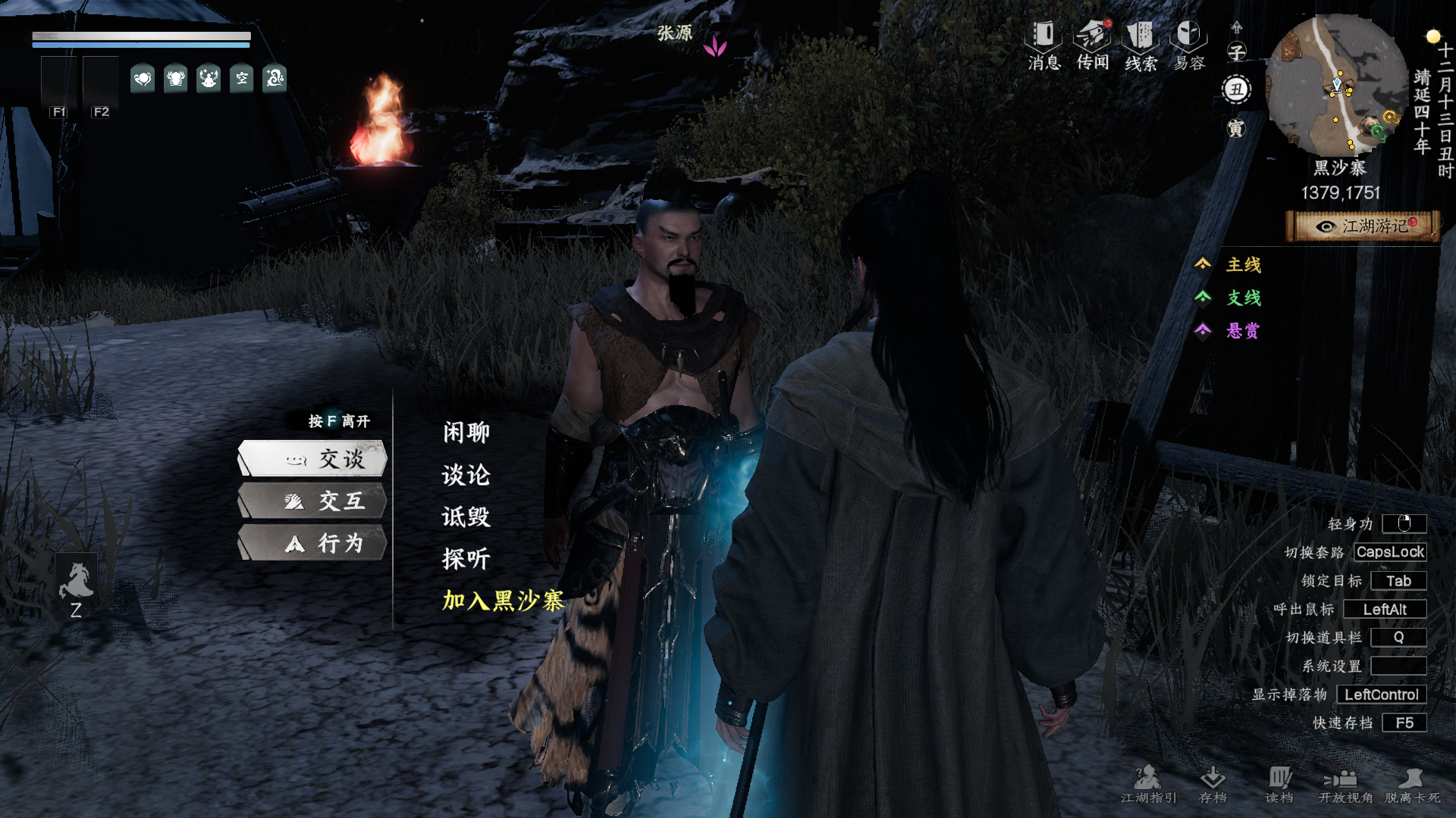 完成江湖故事寨匪来袭后来到1379.1751交谈张源加入黑沙寨后跟随指引完成任务后加入