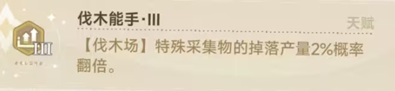 伐木效率的提升还需要配合采集科技术的精准投入。建议优先解锁高效伐木技能,可以有效提升15%的基础伐木速度。同时点出幸运收获技能,能够进一步放大天赋收益,使特殊材料的获取效率翻倍。初期资源有限的情况下,采用高效伐木和幸运收获的组合策略,既能保证基础效率,又能最大化稀有资源的收益。