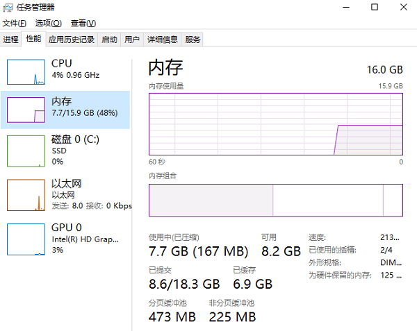 安装完成后重启电脑,再次进入任务管理器检查总内存是否已更新为新增后的值。