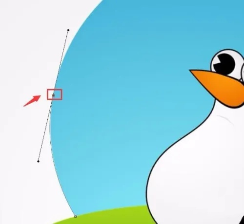 4.选择线段的第二个锚点,按住鼠标不放,拖动以调整线段的弧度。