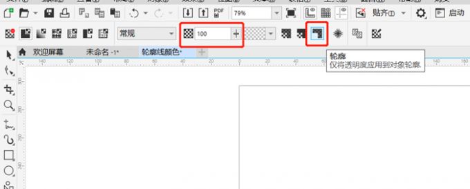 选中图形的轮廓线,然后选择工具栏中的“透明度工具”。