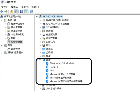 台式机可以打开“设备管理器”查看是否有如下图的蓝牙图标。如果有,说明电脑已经具备了连接蓝牙无线鼠标的条件;如果没有,则需要购买并安装一个蓝牙适配器。