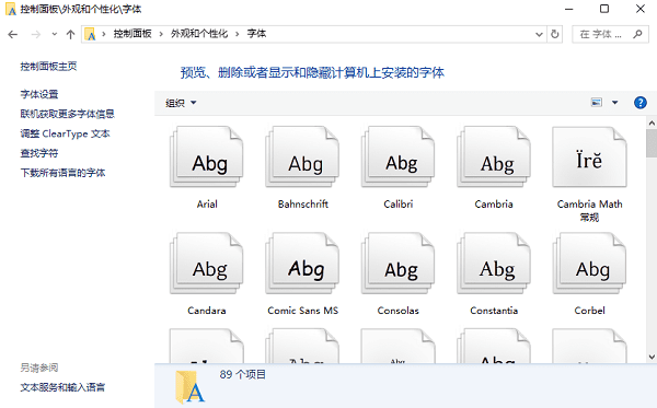 打开“控制面板”,选择“外观和个性化”,点击“字体”以打开字体管理工具。