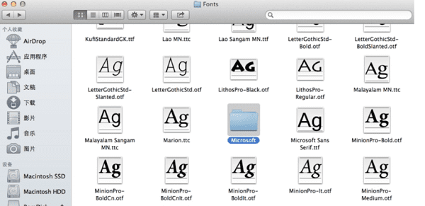 在macOS系统中,字体文件通常存放在/Library/Fonts和 ~/Library/Fonts。/Library/Fonts文件夹存放系统级字体,所有用户均可使用;~/Library/Fonts 文件夹存放用户级字体,仅当前用户可使用。