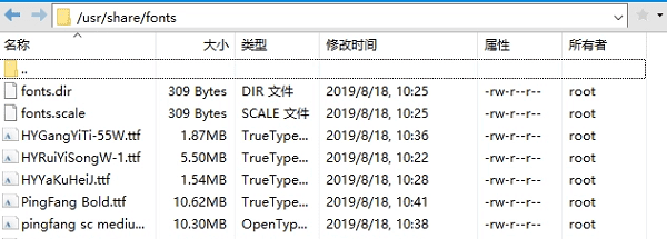 在Linux系统中,字体文件通常存放在/usr/share/fonts和 ~/.fonts。/usr/share/fonts文件夹存放系统级字体,所有用户均可使用;~/.fonts 文件夹存放用户级字体,仅当前用户可使用。