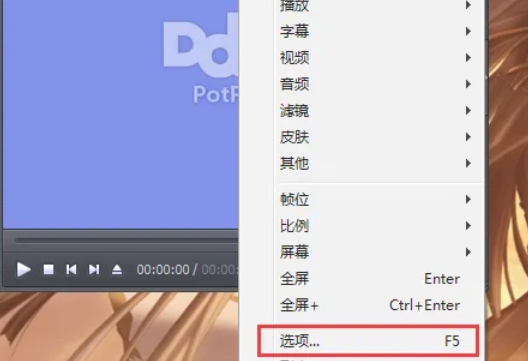 在PotPlayer窗口内点击右键,选择“选项”或“设置”进入设置界面。