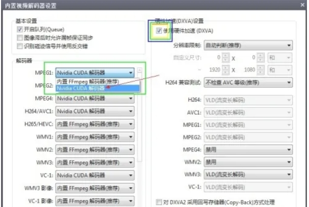 勾选“使用硬件加速(DXVA)”选项,以启用硬件加速功能。