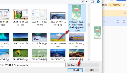 接下来,系统会打开一个文件浏览器窗口,允许你选择要上传的文件。选择文件后,点击“上传云盘”按钮开始上传过程。
