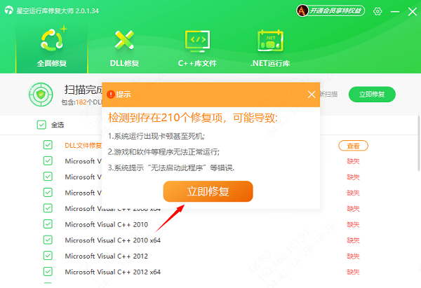 ②等待扫描结束,会检测出你的电脑需要修复的DLL文件,点击“立即修复”即可。