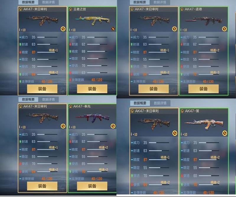 在性能方面,AK47-末日审判表现卓越,与AK47-王者之技相比,它在射速、便携性及主弹匣容量上均实现了全面强化;相较于AK47-奉先,其射速优势也得到了进一步巩固;即便是与AK47-策对比,末日审判在穿透力这项关键属性上亦更胜一筹。综合来看,其强悍的数据面板奠定了它作为顶级武器的地位,综合实力毋庸置疑。