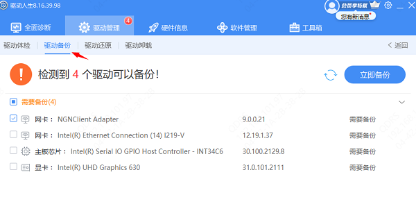 该软件还提供了驱动备份和恢复功能,在更新前可以选择备份现有的驱动程序,这样如果新驱动出现问题,可以迅速恢复到旧版本,避免长时间的故障排除和等待。具体操作如下: