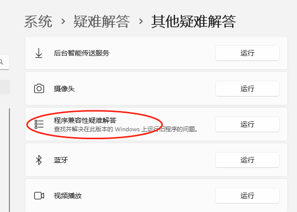 故障排查工具可以自动检测并修复常见的显示问题,节省手动调试的时间。在开始菜单搜索框中输入“疑难解答”并打开,点击“其他疑难解答”,在故障排查列表中,找到“程序兼容性疑难解答”排查工具。点击“运行”,跟随提示进行操作。