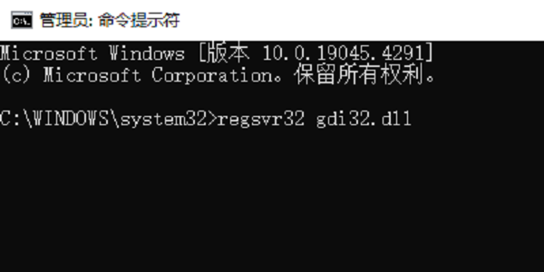 在命令提示符窗口中输入regsvr32 gdi32.dll命令并按回车键。