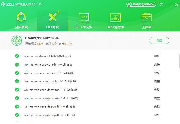 打开星空运行库修复大师,进入“DLL修复”进行扫描。