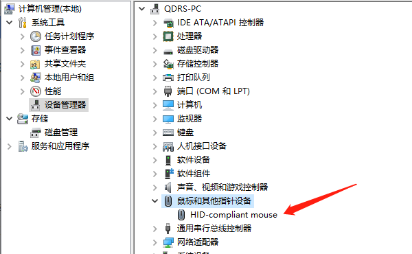 打开设备管理器,找到“鼠标和其他指针设备”。