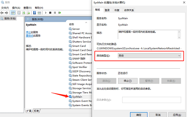 在服务列表中找到“SysMain”服务,右击选择“属性”。
