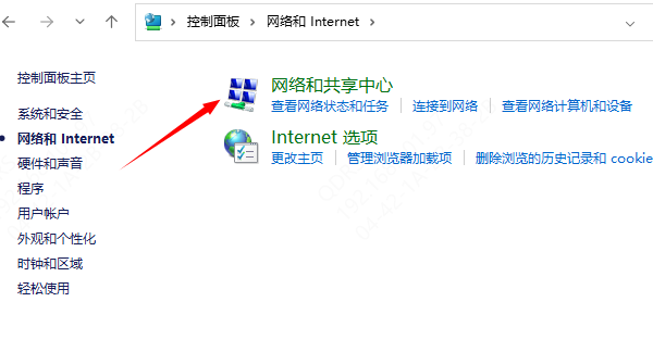 打开“控制面板”,选择“网络和Internet”,然后点击“网络和共享中心”。