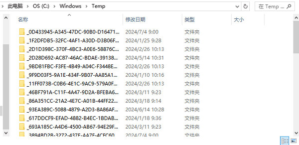 打开文件资源管理器,导航至C:WindowsTemp和C:Users[用户名]AppDataLocalTemp,手动删除其中的文件和文件夹。