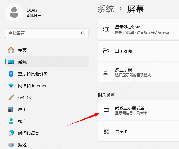 以win11操作系统为例,打开电脑,右键点击桌面空白处,选择“显示设置”,在弹出的窗口中,选择“高级显示器设置”;
