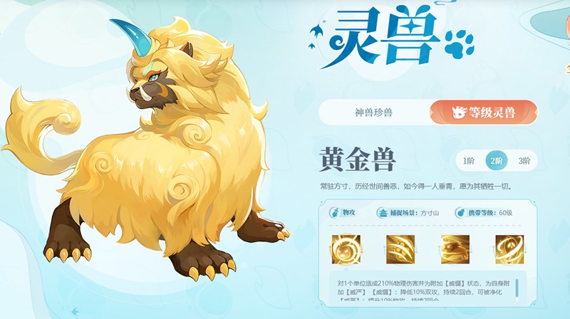 黄金兽在物理输出神兽中独树一帜,兼具高伤害和控制效果。"骑手突袭"技能不仅能造成250%的物理伤害,还有概率使敌人陷入持续三回合的混乱状态。这种干扰能力在PVP中极具战略价值,在PVE中清理小怪也同样高效。