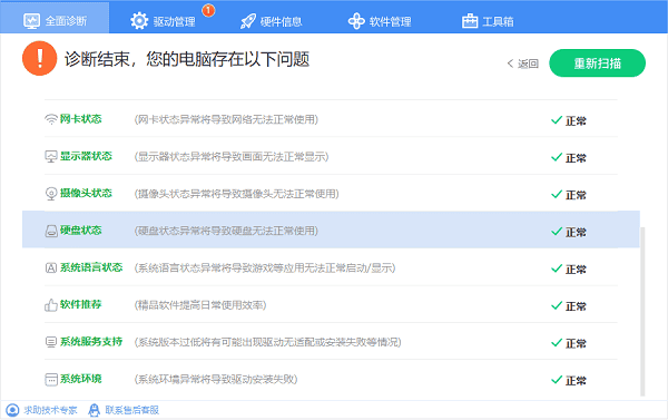 ①、打开驱动人生,在“全面诊断”里进行扫描,如果显示您的硬盘异常,点击“立即修复”。