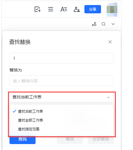 4、还可以设置一个查找的范围,除了查找当前打开的工作表文档之外,我们还可以选择查找全部的工作表或者指定范围。?