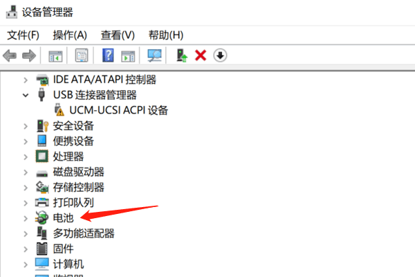 打开“设备管理器”,在列表中找到“电池”或“其他设备”分类下的电池相关条目。