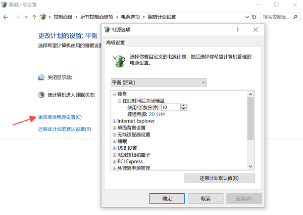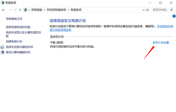 点击“更改计划设置”,然后选择“更改高级电源设置”。