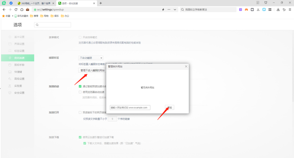 3、如果不想某些网页进入睡眠状态,可以点击下方的【管理不进入睡眠的网站】,然后输入网址,点击【添加】。?