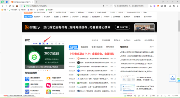 第一步,启动360安全浏览器并打开想要抠图的网站页面,然后将鼠标的光标放到想要使用的图片上。