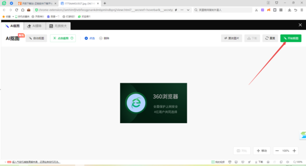 第五步,抠图的区域选择好以后,点击界面右上角的【开始抠图】按钮。
