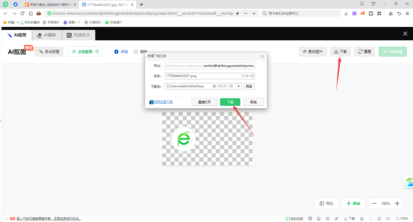 第六步,抠图确认完成后,点击【下载】按钮,即可将刚刚抠完图的图片保存到电脑本地了。