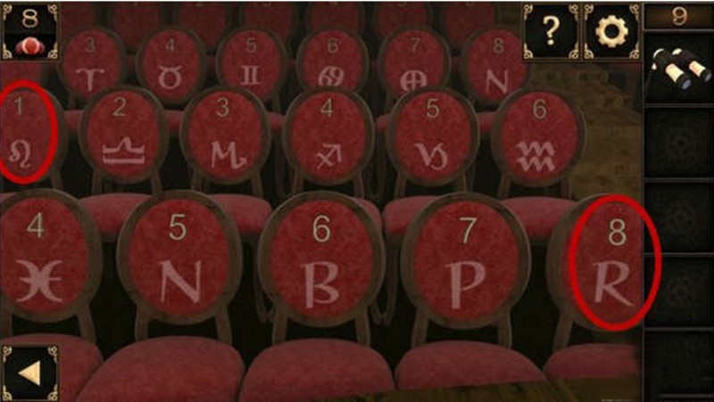 根据VE两个字母对应的图案,在左侧观众席座位上找到数字1和8。