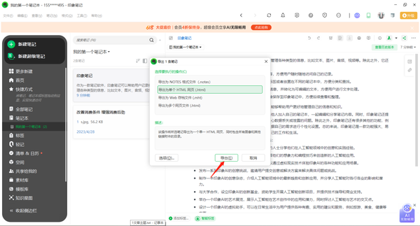 6、也可以对整个笔记本进行导出,在【笔记本】列表页选择需要导出的笔记本,右击选择【导出笔记】即可将该笔记本内的所有笔记导出。?