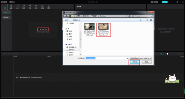当然了,我们还可以通过直接拖拽视频的方式,将视频添加到时间轴轨道当中去。