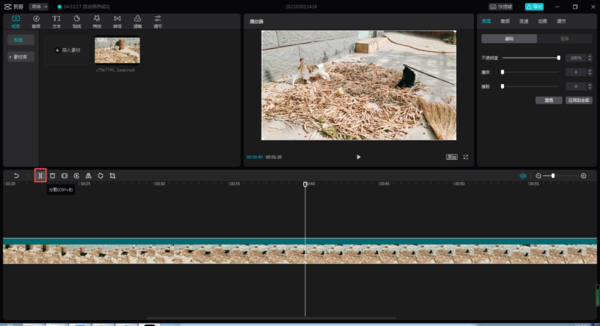 第六步,接着我们点击界面中部的【分割】小图标,就可以完成开始位置的裁剪了。